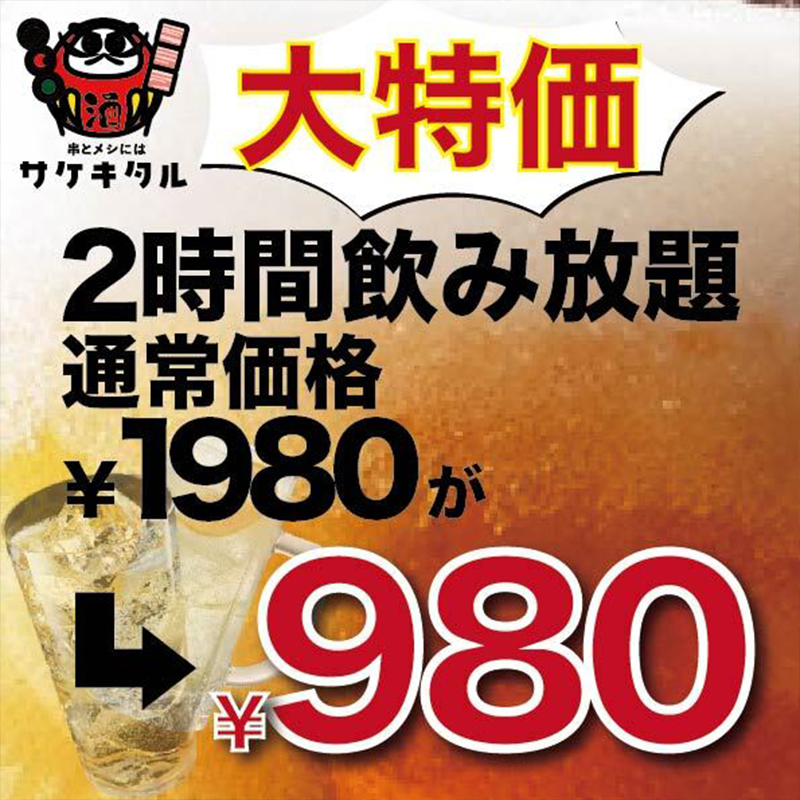 2時間飲み放題付きで2杯以上飲まれるお客様にお得です!