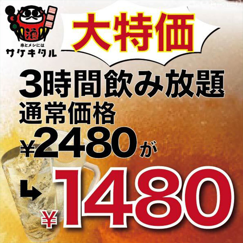 驚愕プラン!3時間単品飲み放題