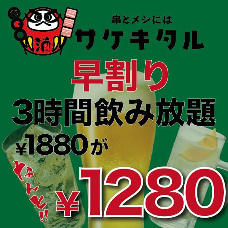 大特価の早割り飲み放題!